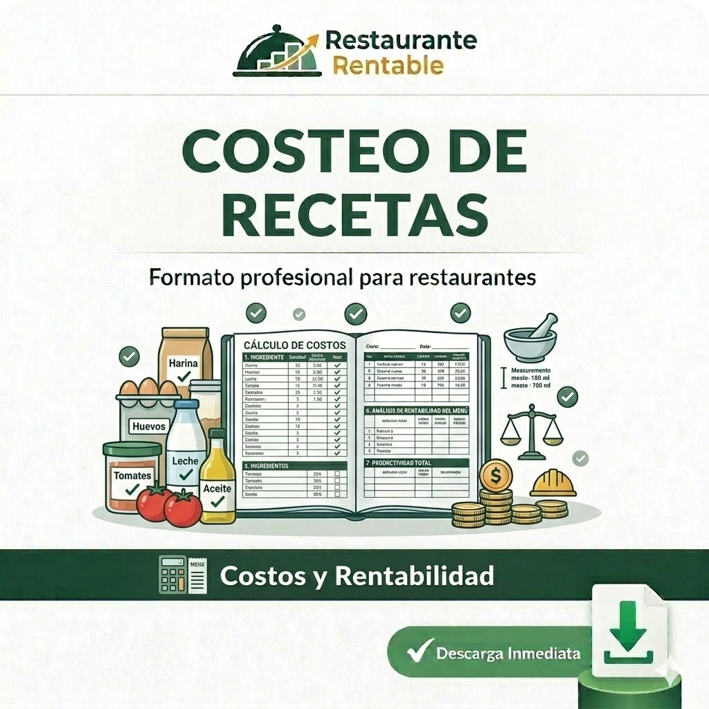 Muchas veces los restaurantes establecen precios de venta sin conocer con exactitud cuánto cuesta preparar cada receta, lo que puede generar pérdidas sin que el negocio lo note. Este formato permite calcular de manera clara el costo de cada ingrediente utilizado en una preparación.