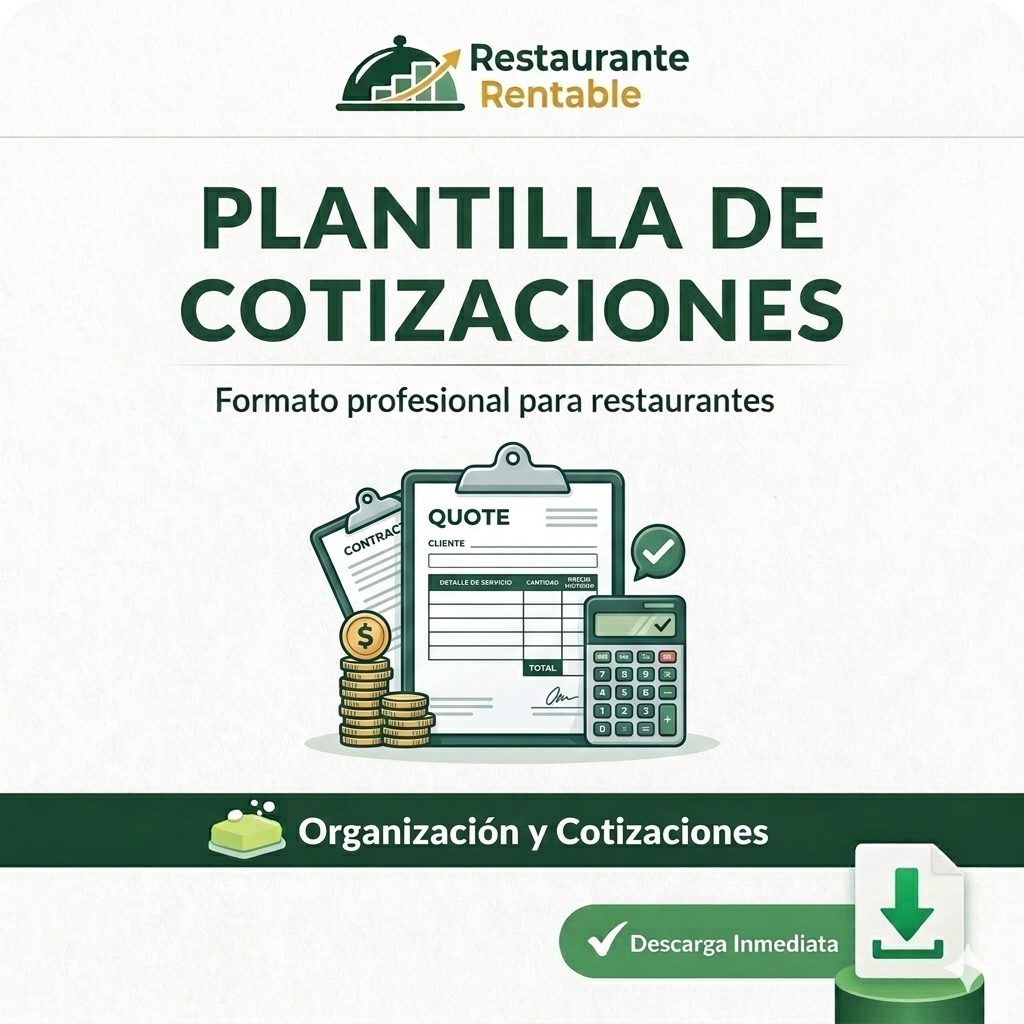 La Plantilla de cotizaciones es una herramienta diseñada para ayudar a restaurantes y negocios de alimentos a presentar propuestas de precios de forma clara, organizada y profesional.